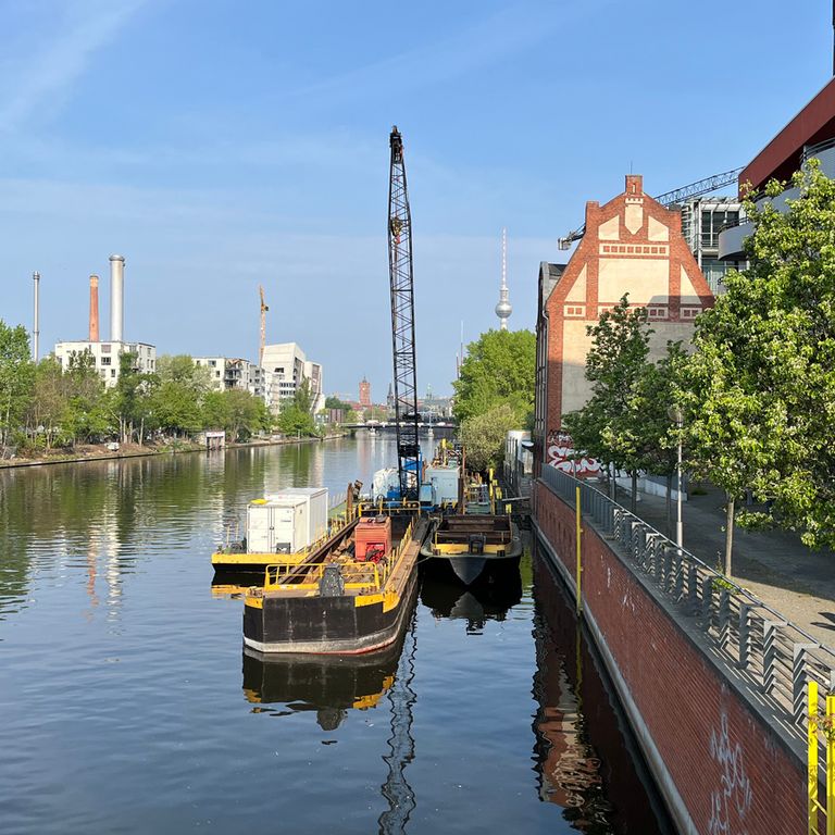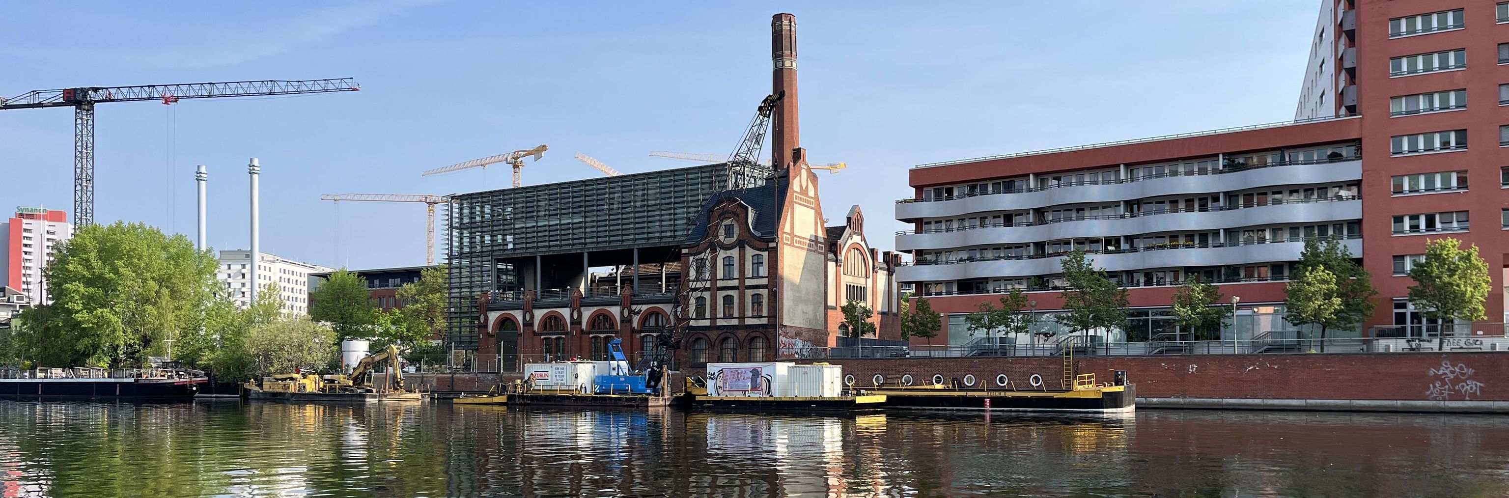 Das Pumpwerk des Radialsystems V wurde 1880 gebaut. Es bestand aus Heiz- und Maschinenhaus und einem Wohn- und Bürogebäude. Schon 1905 musste das Pumpwerk umgebaut und erweitert werden. Die Pumpen wurden durch Dampfmaschinen angetrieben. Die für deren Betrieb nötigen Kohlen wurden mit Schiffen antransportiert, neben dem Pumpwerk zwischengelagert und mit Loren zum Heizhaus gefahren. Dafür wurde das Ufer mit einer senkrechten Ufermauer eingefasst, die auf Holzpfählen gegründet und durch eine Holzspundwand gegen Unterspülung gesichert war.
